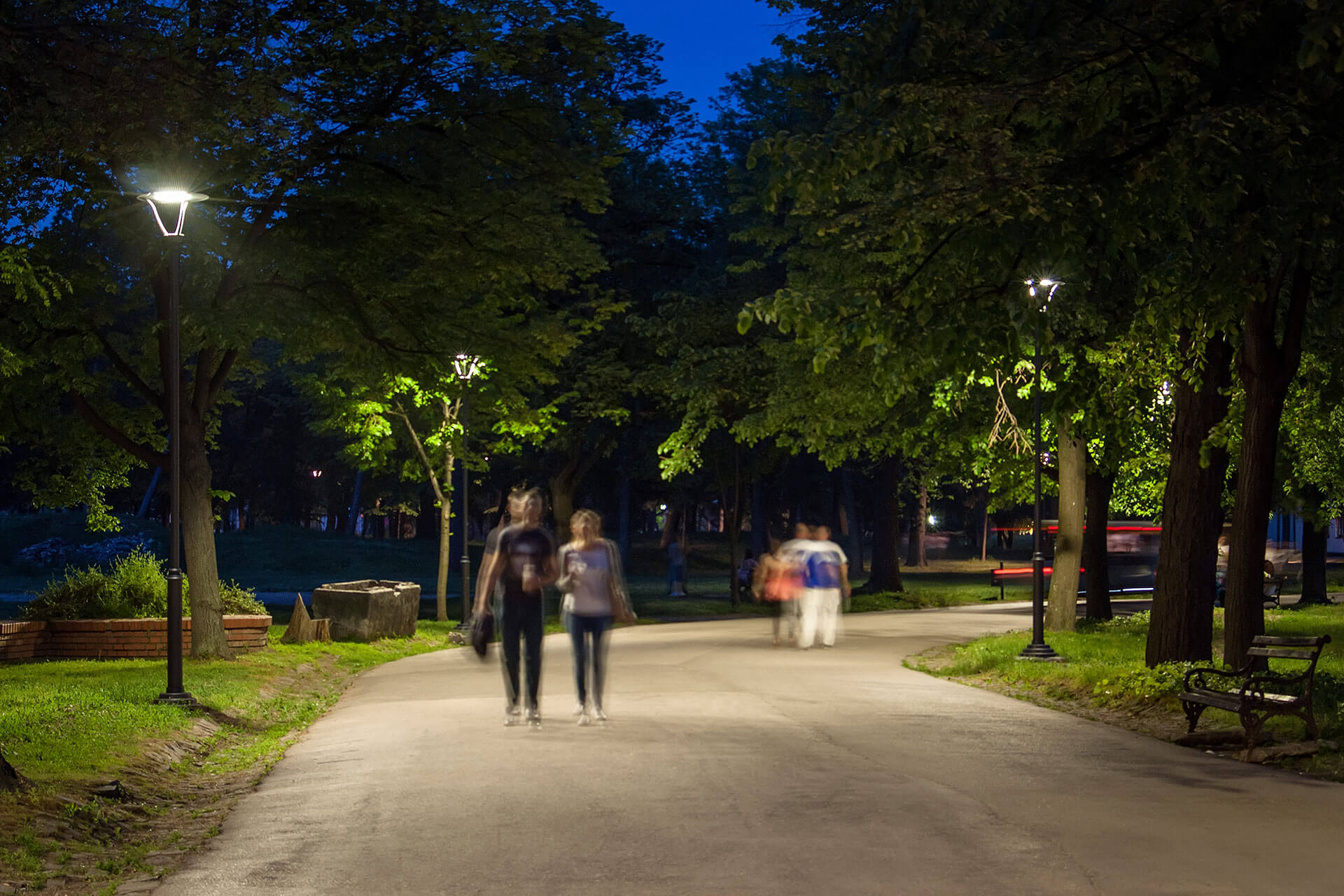 In 2013, the local authorities replaced the old luminaires fitted with mercury lamps to enhance safety and the sense of well-being in the park by increasing the lighting levels with an energy efficient solution.